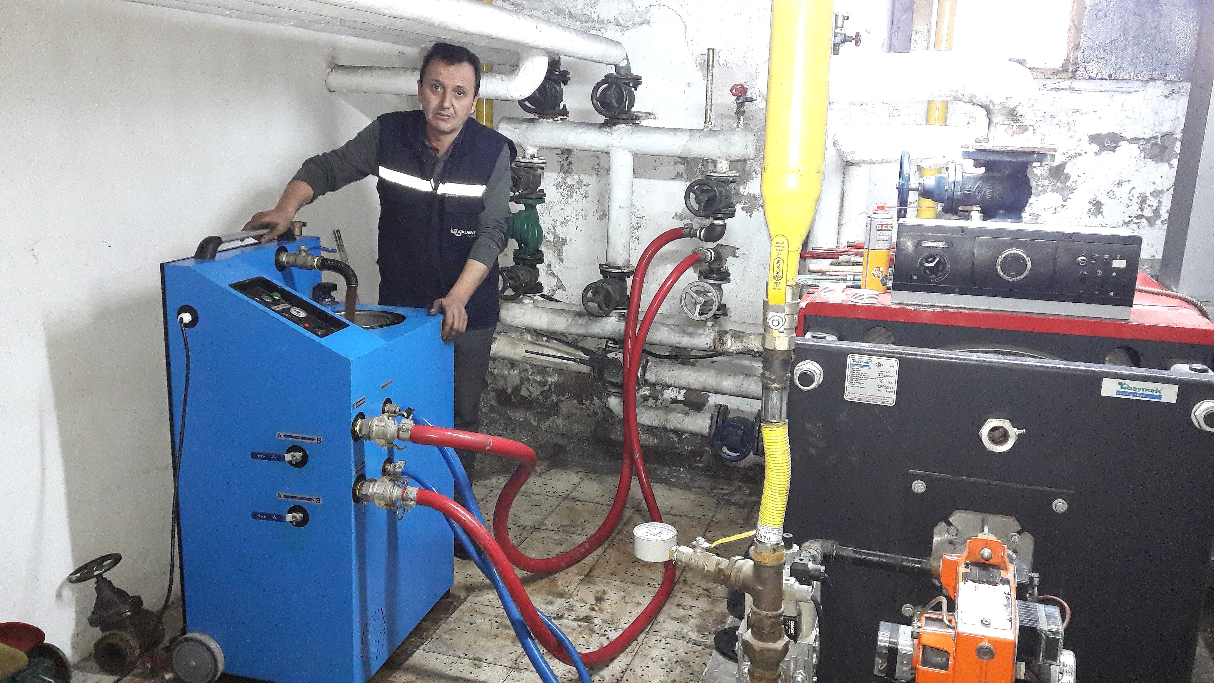 Kazan dairesinden çıkarak tesisatın merkezine ulaşan gidiş ve dönüş kolektörüne bağlanan yüksek basınçlı ve çift yönlü makinelerle, kimyasal eklenen iç kanallar, ısı verimini düşüren tortu oluşumunu engeller. Bu tortu, zamanla korozyon ve partikül parçalarının birleşmesi sonucu tesisatı tıkayabilir. Bu durumda, kullanılan tesisat temizleme makinesinin aynı anda ters yönde basınç uygulayabilmesi önemlidir. Aksi takdirde tesisatın tıkanması ve hasar görmesi riski vardır. Firmamız olarak, bu olasılığa karşı, profesyonel ekipmanlar seçmekte ve ilkel yöntemlerden kaçınmaktayız. Kurulacak makine sadece tesisat temizliği için tasarlanmış olup ileri ve geri yıkama yapabilme özelliğine sahiptir. Ayrıca, daha sağlıklı bir temizlik için tesisattan gelen metal parçalarını toplamak için manyetik bir filtre bulunmaktadır.